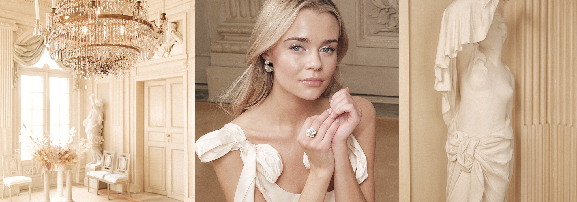 Denne vakre ringen kombinerer klassisk design med en touch av luksus. Med et kløverformet motiv, dekorativ perlekant og børstet overflate, er den både feminin og tidløs. Den åpne formen gjør ringen justerbar og behagelig å bruke.