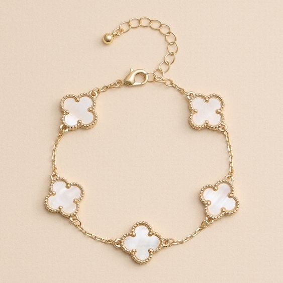 Armbåndet er laget av naturlige skjell og en slitesterk gullfarget lenke, noe som gir en perfekt kombinasjon av kvalitet, komfort og stil. Den lette konstruksjonen gjør det behagelig å bruke hele dagen, og med justerbar lengde og sikker karabinlås får du en optimal passform uansett håndleddsstørrelse.