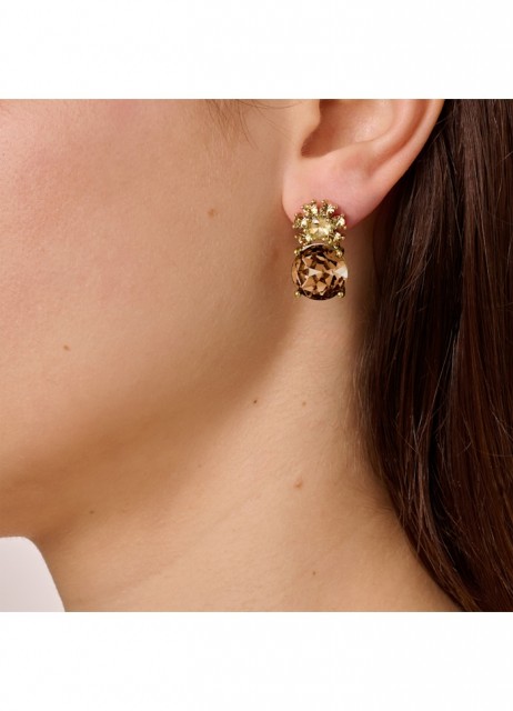 DYRBERG/KERN Beckia SG Brown / Golden Earrings er et par iøynefallende og feminine øredobber som kombinerer varme toner med klassisk eleganse. Øredobbene er laget i gullbelagt rustfritt stål og prydet med fasetterte brune krystaller som fanger lyset og skaper en rik, glødende effekt. Den gylne finishen forsterker elegansen og gir smykket et eksklusivt og moderne preg.