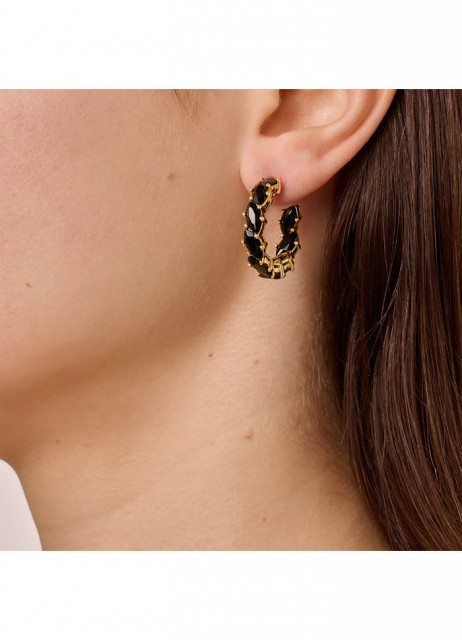 DYRBERG/KERN Tamarin SG Black Earrings er stilrene og iøynefallende øredobber som kombinerer moderne design med klassisk eleganse. Øredobbene er laget i gullbelagt rustfritt stål og dekorert med fasetterte sorte krystaller som gir et dypt, luksuriøst skimmer. Den varme gulltonen fremhever krystallenes mørke glans og skaper en vakker kontrast som gir smykket et eksklusivt uttrykk.