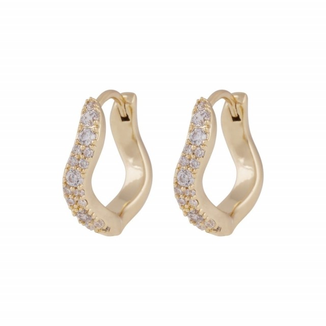 Disse stilfulle øredobbene fra Snö of Sweden har et elegant, buet design som skaper en raffinert og feminin silhuett. Den gullbelagte overflaten kombineres med skinnende klare steiner som fanger lyset vakkert og gir et luksuriøst preg.