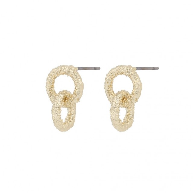 Disse stilfulle øredobbene fra Snö of Sweden kombinerer moderne skandinavisk minimalisme med et kunstnerisk preg. Øreringene består av to sammenkoblede ringer med en lett hamret og teksturert overflate som gir et eksklusivt og håndlaget uttrykk.
