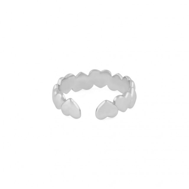 Den Lovely Ring fra Snö of Sweden er et sjarmerende smykke som kombinerer søt symbolikk med minimalistisk eleganse. Ringen består av små, blankpolerte hjerter i sølvfarget metall som danner en harmonisk sirkel – et tidløst design som uttrykker kjærlighet og varme.
