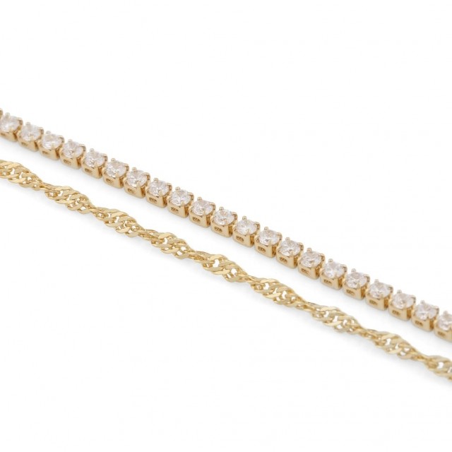 Dette nydelige armbåndet fra Snö of Sweden oser av raffinement og tidløs skjønnhet. Armbåndet er gullbelagt og utsmykket med en rekke glitrende klare krystaller som fanger lyset fra alle vinkler. En fin kjededetalj langs sidene gir designet et ekstra lag av eleganse og gjør det perfekt både alene og i kombinasjon med andre smykker.